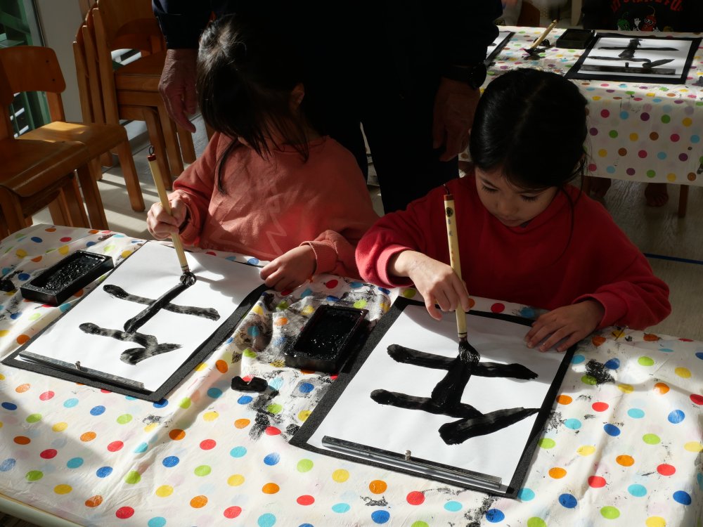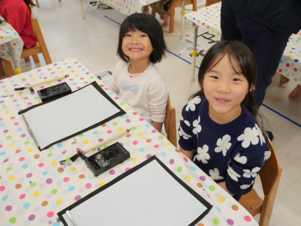 年長児くじら組のお友だちが毎月楽しみにしている 園長先生との習字。