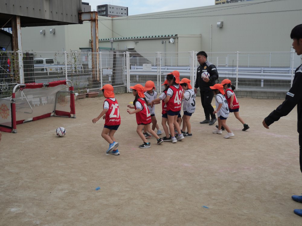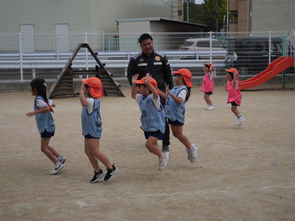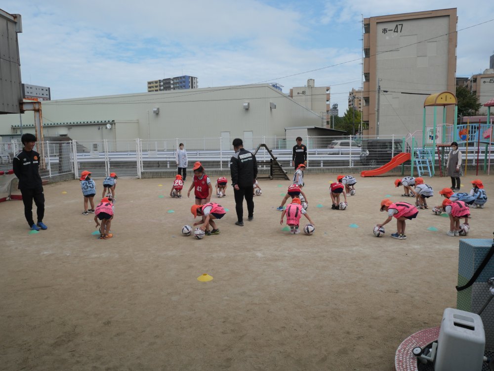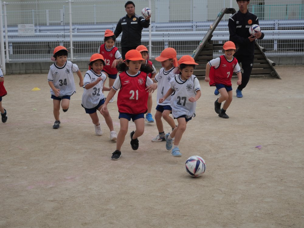 ギラヴァンツ北九州のコーチ3人が来てくれて、楽しくサッカーに親しみました。
